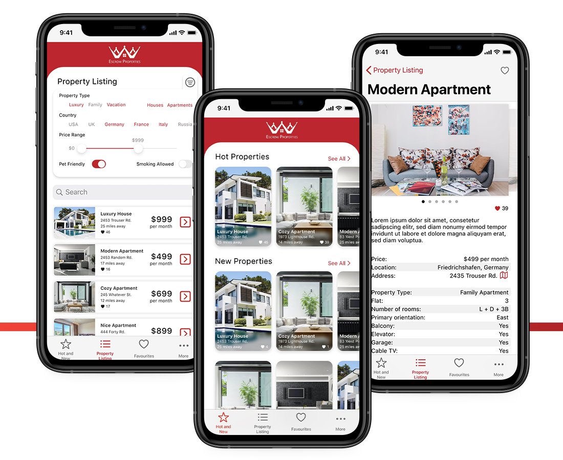 Escrow Properties required a brand overhaul, as well as a native iOS mobile app, through which customers could look find the property they would like to rent.